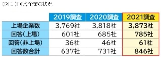 回答企業数100社ずつ増加、非上場企業も61社に